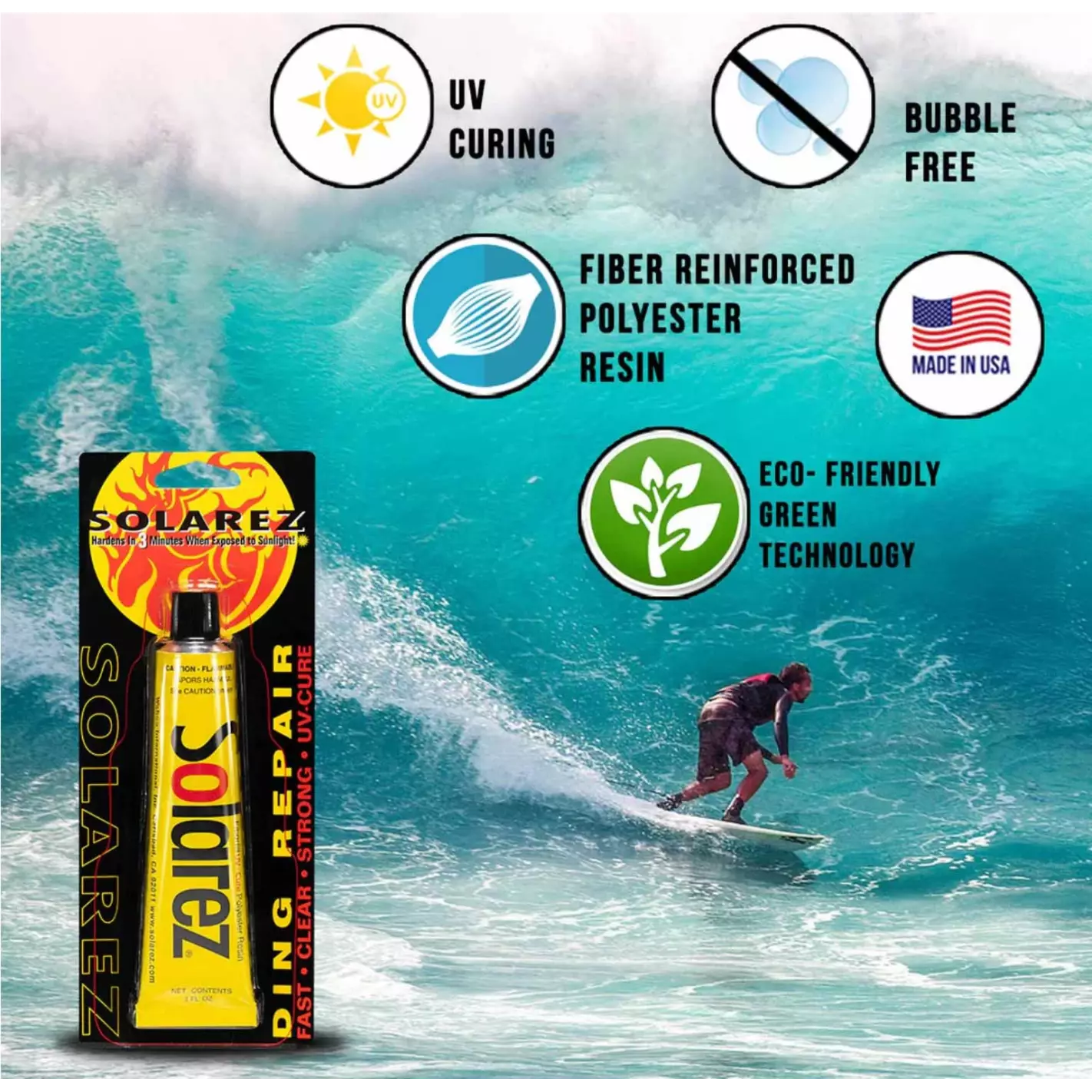 Solarez enthält keine luftblasen, die mischung, diese liste zu verwenden, ohne die notwendigkeit für alle werkzeuge, katalysiert mit die ultra-violetten sonne, die sie überraschen werden alle arten von arrangements und die qualität der arrangements, die sie erhalten. Es ist der einfachste weg, um zu reparieren, surfbretter mit kleinen akzenten.