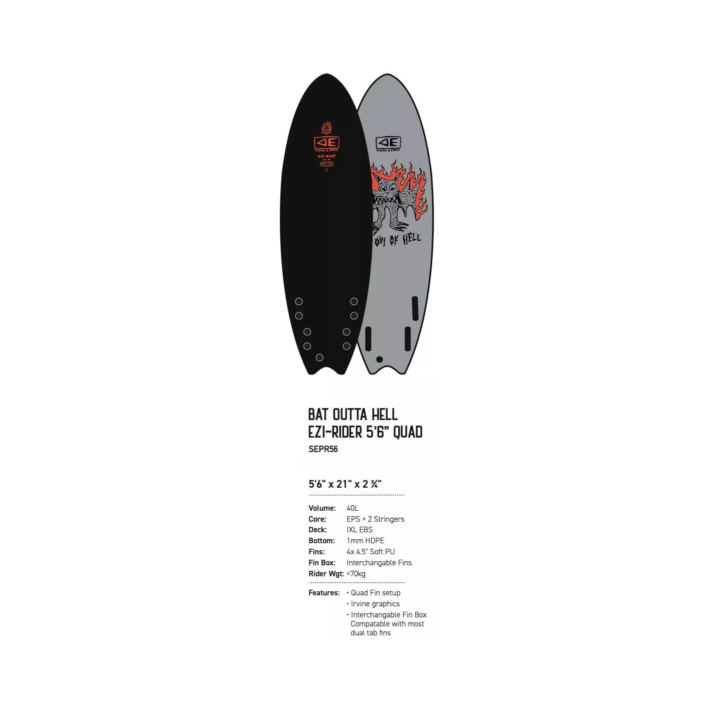 Das Surfbrett Softboard Ocean & Earth Bat Outta Hell EZI-Rider 5'6 Quad wurde von Jack Irvine entworfen.