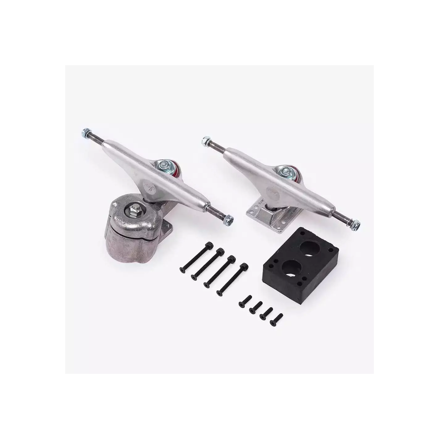 Yow S5 Meraki Truck Pack, das den Front- und den Rear-Truck sowie einen Rubber Rider und alle notwendigen Hardware enthält.