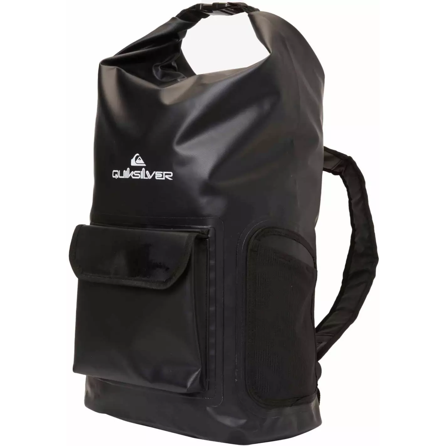 Der wasserdichte Quiksilver Sea Stash Mid-Rucksack verfügt über ein verstärktes Fach für nasse und trockene Gegenstände, eine Fronttasche, um Gegenstände griffbereit zu halten, und einen seitlichen Wasserflaschenhalter.