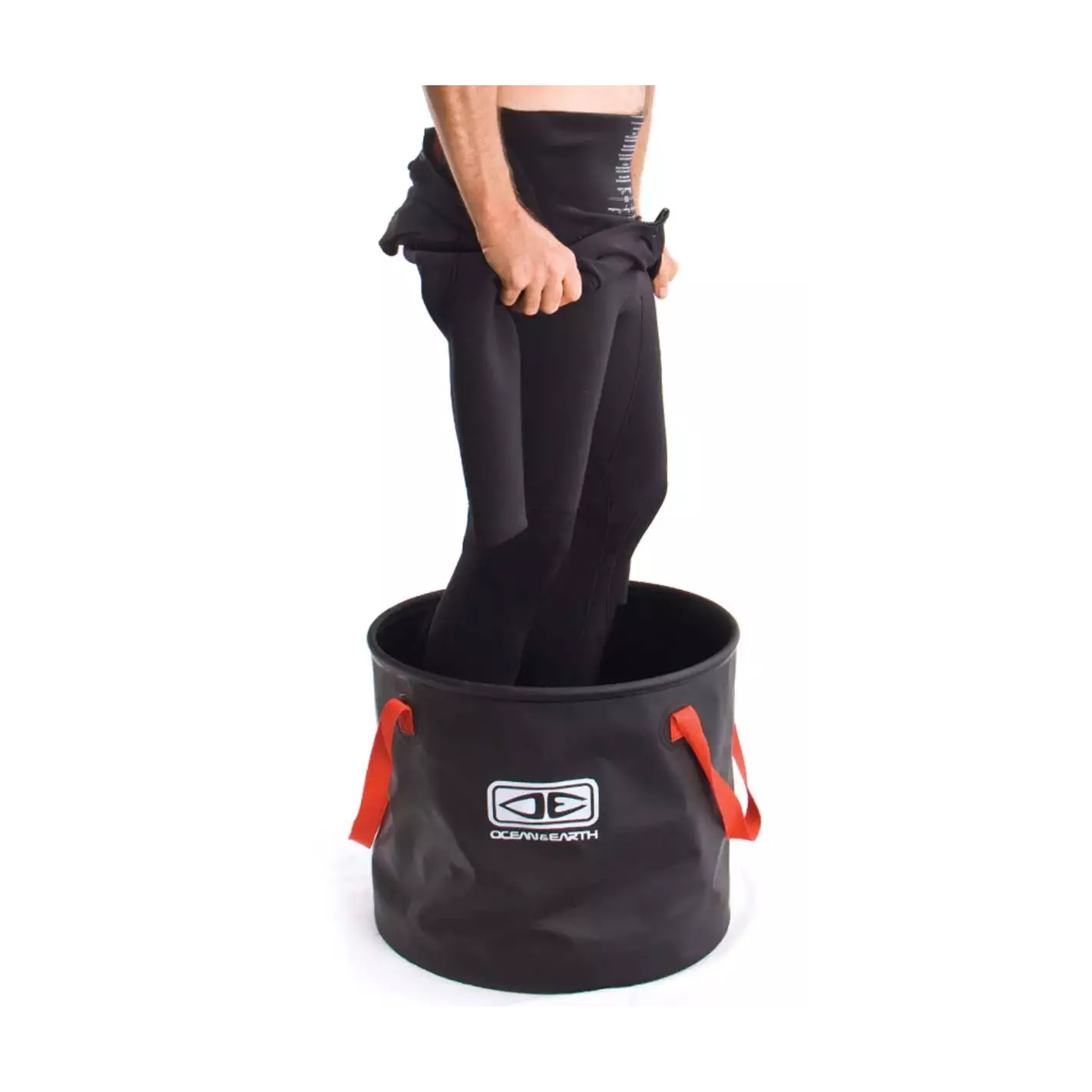 The Ocean & Earth Compact Wetty Bucket is very compact and practical, both to change without messing your wetsuit, and to store your wetsuit without messing up your car.