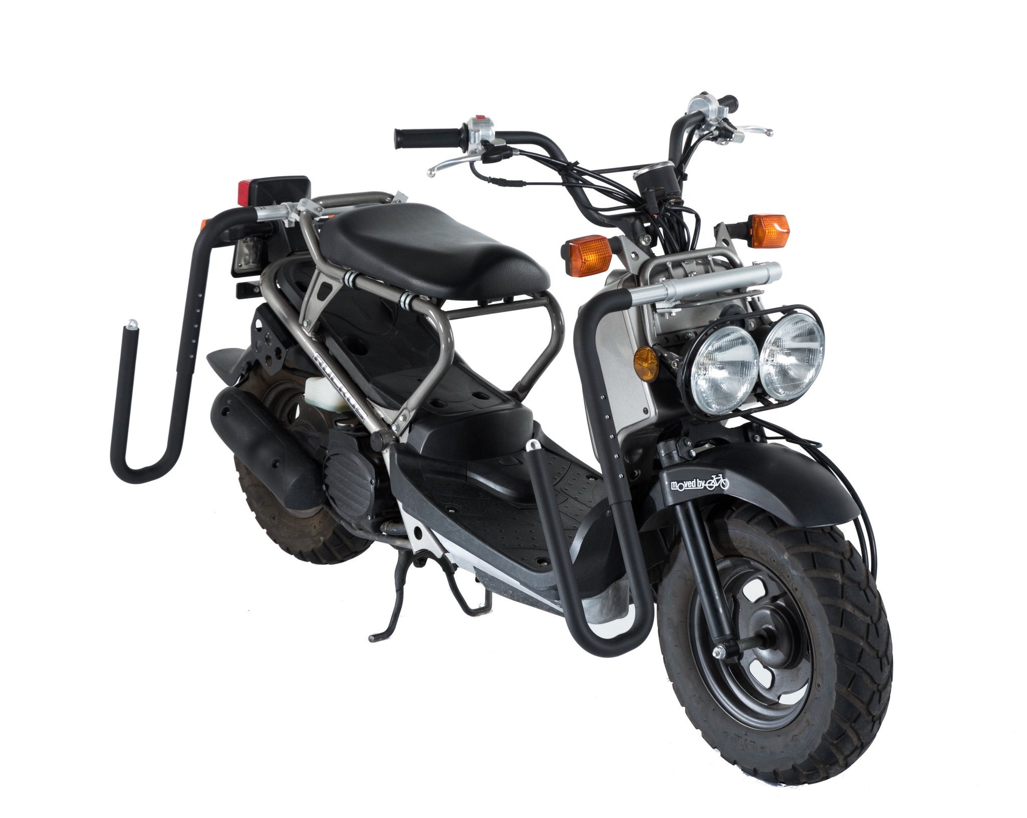 All aluminum and stainless construction for coastal environments, fits a wide array of mopeds and scooters and just about any surfboard. We recommend the racks for boards 7-8 feet in length when bars are mounted together, or longer boards when bars are mounted apart. Racks have been evaluated on typical mounting configurations at speeds up to 30 mph.