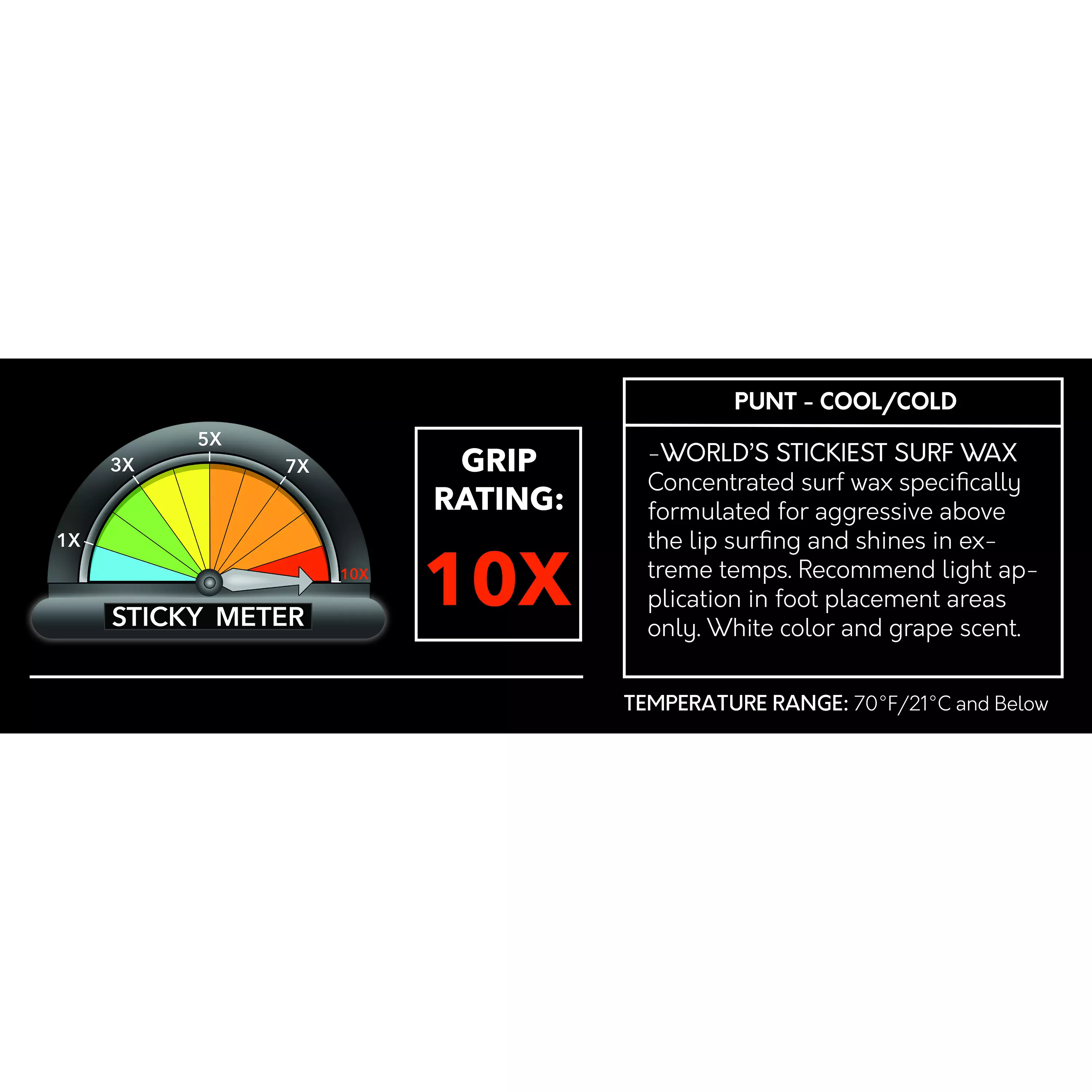 Sticky Bumps Punt wax provides 10 times more adhesion than the original formula. Apply it as a supplement on your usual wax.