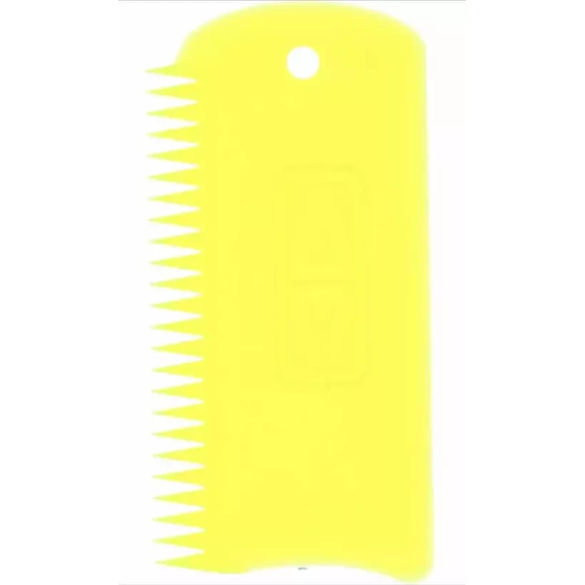 Designed to make scraping your board easier, it features a curved outline for the rails and a straight edge for the deck and base. Additionally, you can use the comb to texture the wax and enhance grip.