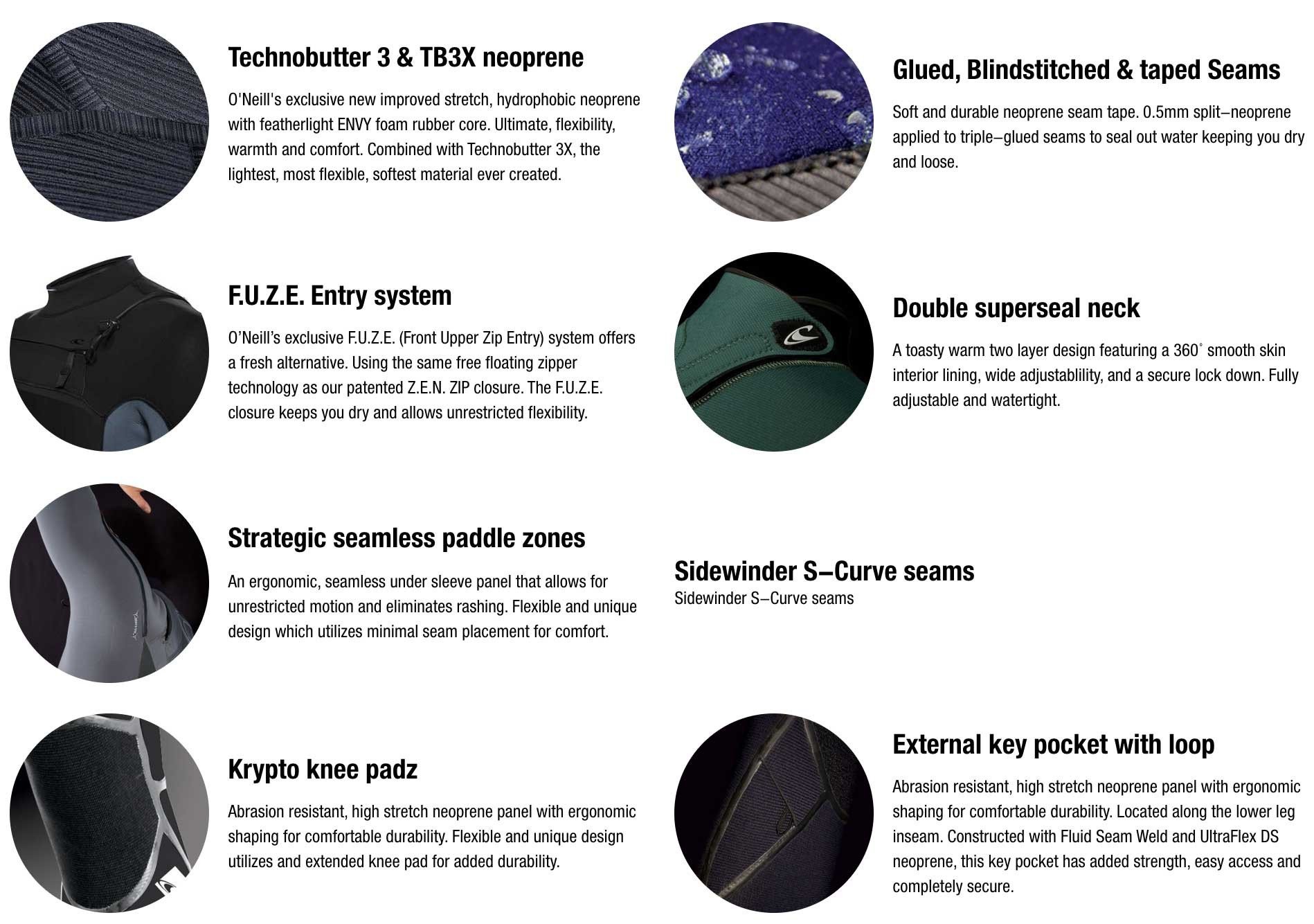 The new Technobutter 3 neoprene is amazing, you feel like in your pajamas, and the seams are sealed inside for durability and elasticity.
