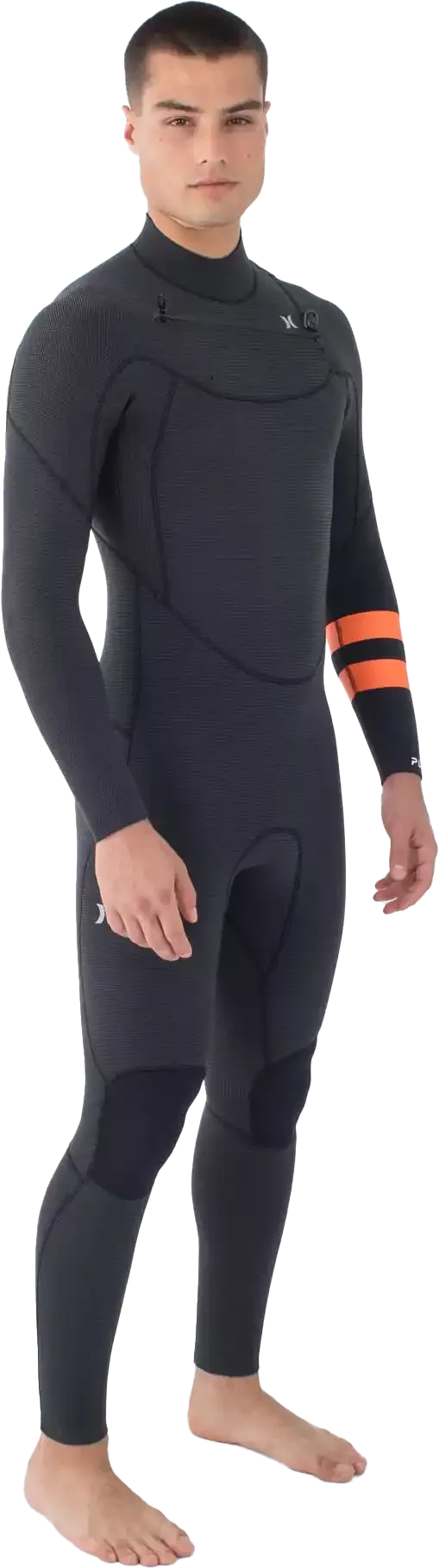 The Hurley Plus 5/3mm wetsuit is one of the warmest and most flexible wetsuits on the market. The new Superstretch Neospan neoprene is super stretchy, with a unique geometric appearance. It is heat sealed 100% inside. It has the new Xtend 2.0 fabric inside, a polar lining system, on the chest and back with quick-drying thermal retention threads. The zipper is watertight, and is in the front. It has a pocket on the chest to store your car keys.
