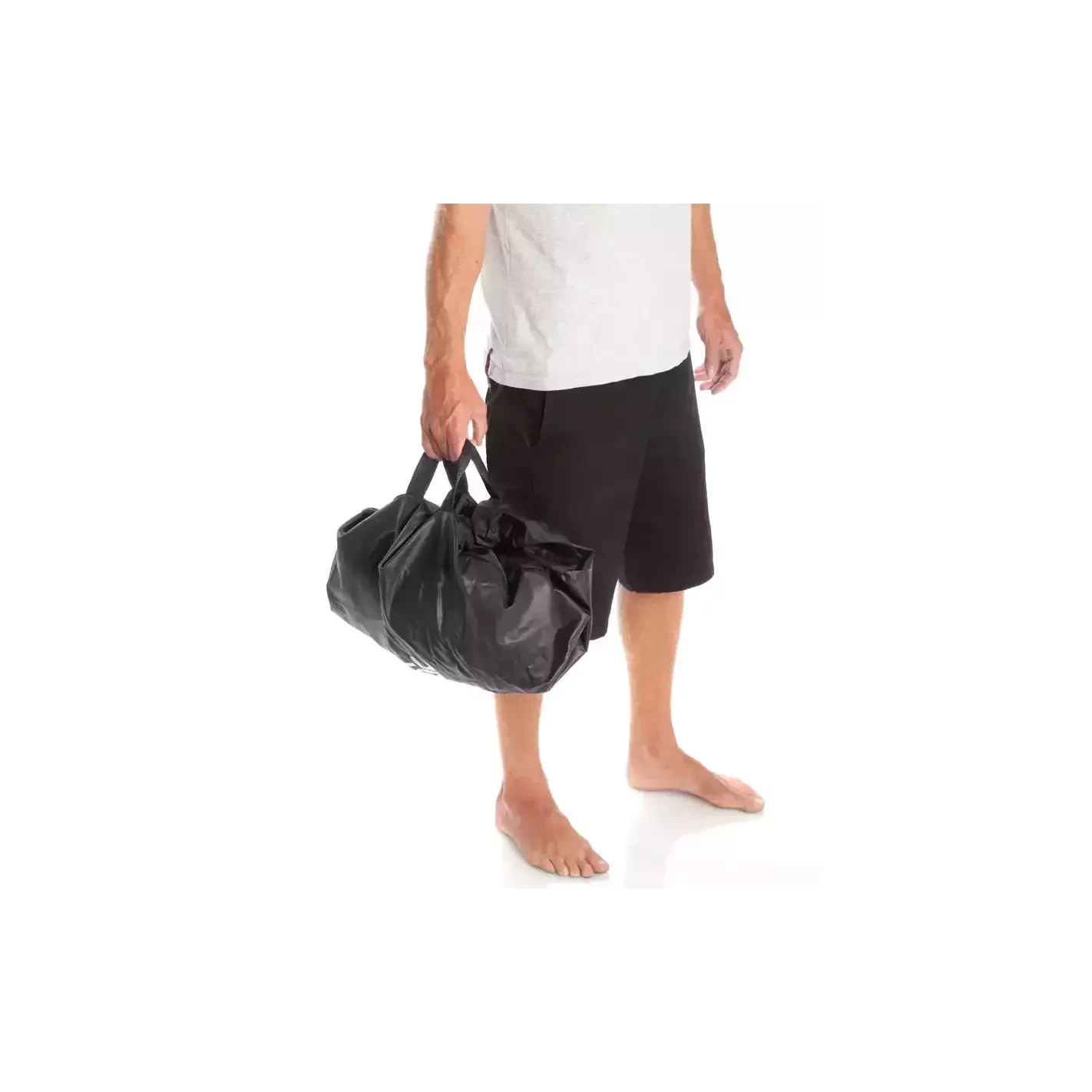 Gracias a su diseño inteligente, esta bolsa se convierte en un saco estanco, ideal para evitar mojar el coche después de tus sesiones. Además, cuenta con 2 cordones de agarre que la hacen muy cómoda de transportar.
