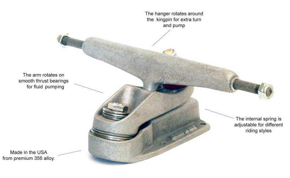 Éste es el Eje original y pastentado de Carver con el que empezó el surfskate. Aún es el eje de surfskate con el giro más suave y el bombeo más rápido, liderando la evolución del auténtico surfskate.