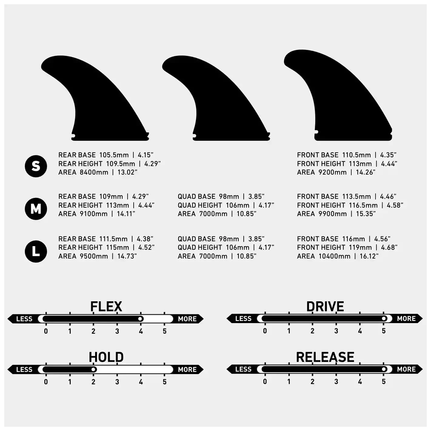 Fabricadas con la tecnología AIR Tech que hace que las quillas floten en el agua si se sueltan de la tabla, impidiendo que se hundan en el fondo del mar.