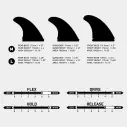 Kelly Slater recomienda usar la talla Large en olas grandes para un mayor control y sujeción, y la talla Medium en olas pequeñas para mantener velocidad y respuesta.  Son compatibles con el sistema Futures, garantizando una instalación segura y un rendimiento óptimo.