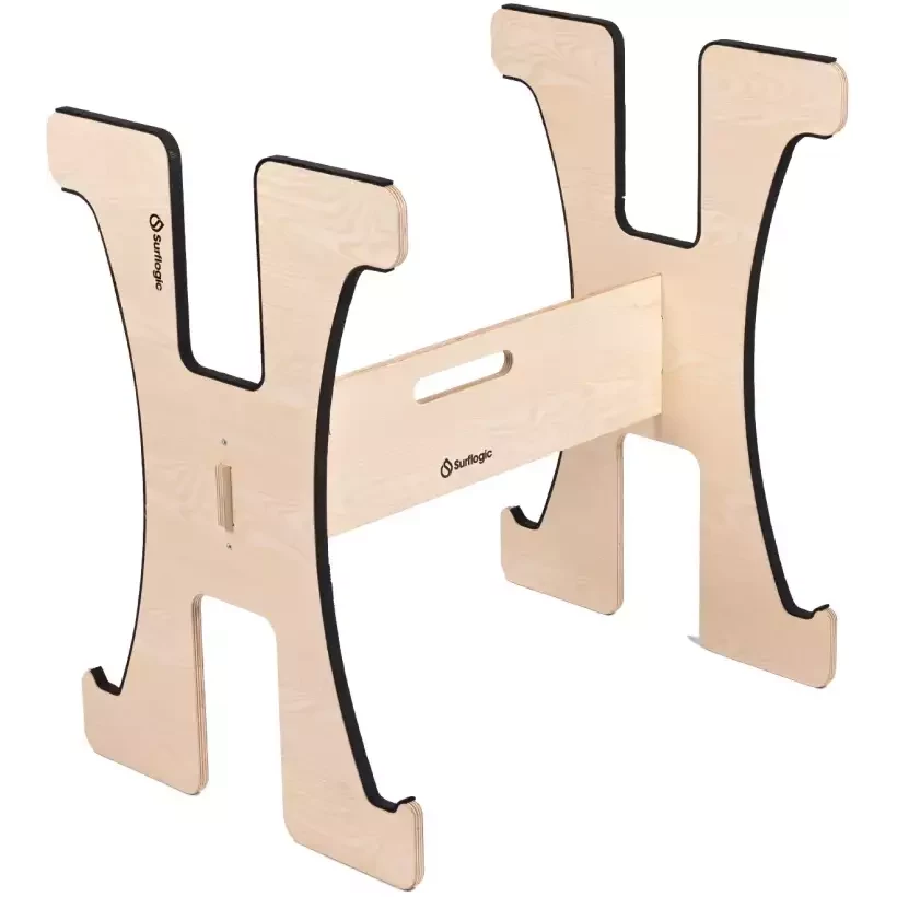 Inspirado en los soportes de shapers que se utilizan en las fábricas de tablas de surf, está diseñado para usarse con todo tipo de tablas. Dispone de un acolchado de espuma que protege la superficie de tus tablas y de un asa ergonómica que facilita su transporte. Además, permite almacenar hasta 3 tablas de forma segura y ordenada.
