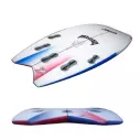 La cola es muy original, una mezcla de swallow tail invertido con square tail, para reducir la superficie debajo del pie trasero.