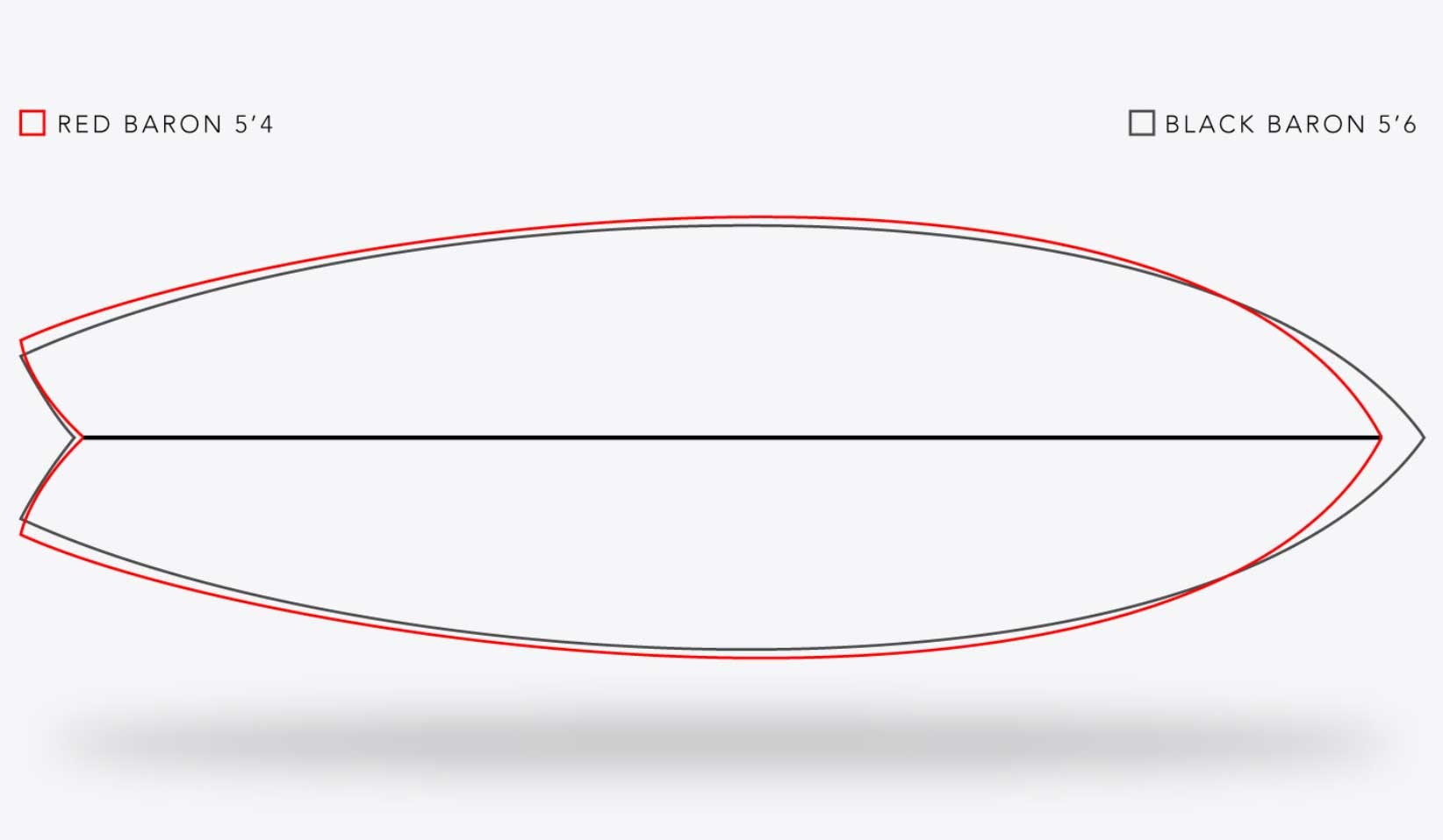 Se surfea más corta y más ancha que la Black Baron, con un ancho ligeramente adicional en el contorno de la cola que también proporciona más fluidez y una generación de velocidad fácil. El Vee se mantiene en el contorno inferior en todo momento, como la Baron original, aunque con un toque más de doble cóncavo que proporciona impulso y te ayuda a proyectar hacia abajo.