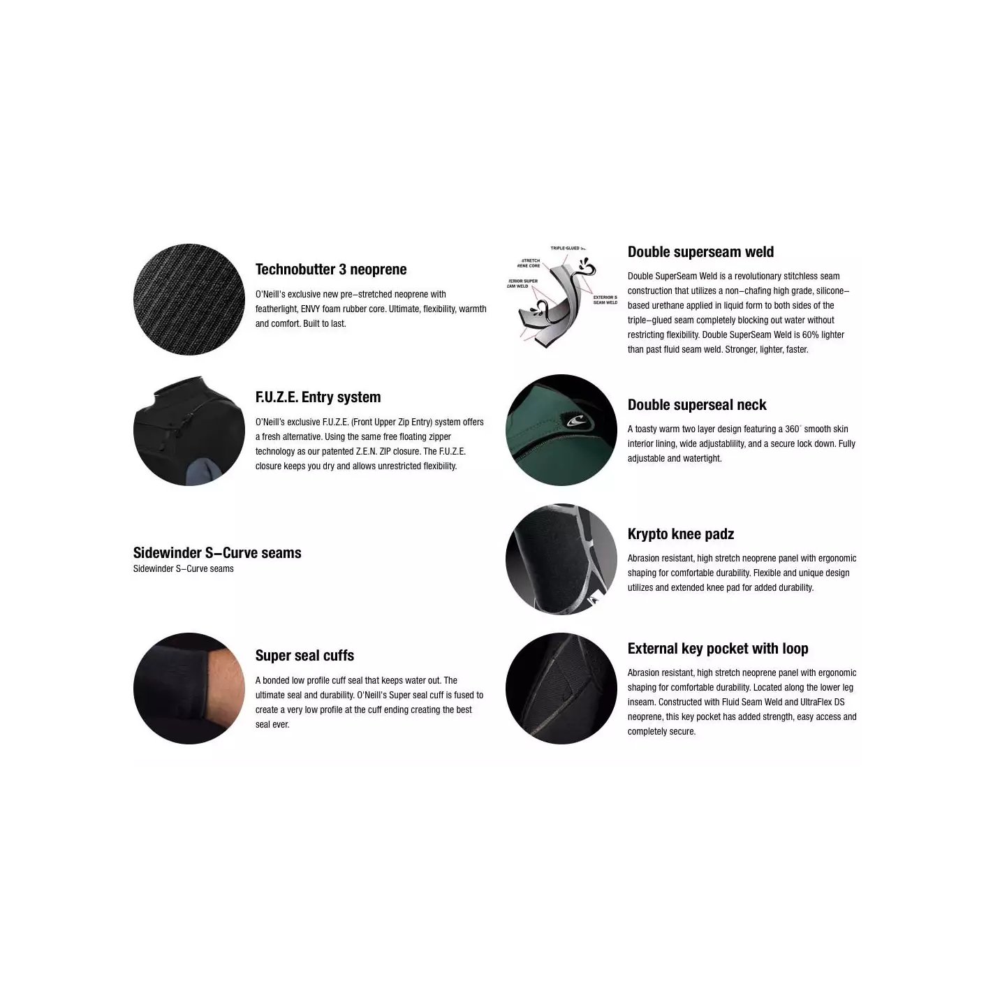 Confeccionado con neopreno Technobutter 3X en brazos y hombros, y Technobutter 3 en el resto del cuerpo, este traje proporciona una elasticidad superior y una retención de calor optimizada, gracias a su innovadora tecnología que evita la absorción de agua en los tejidos.
