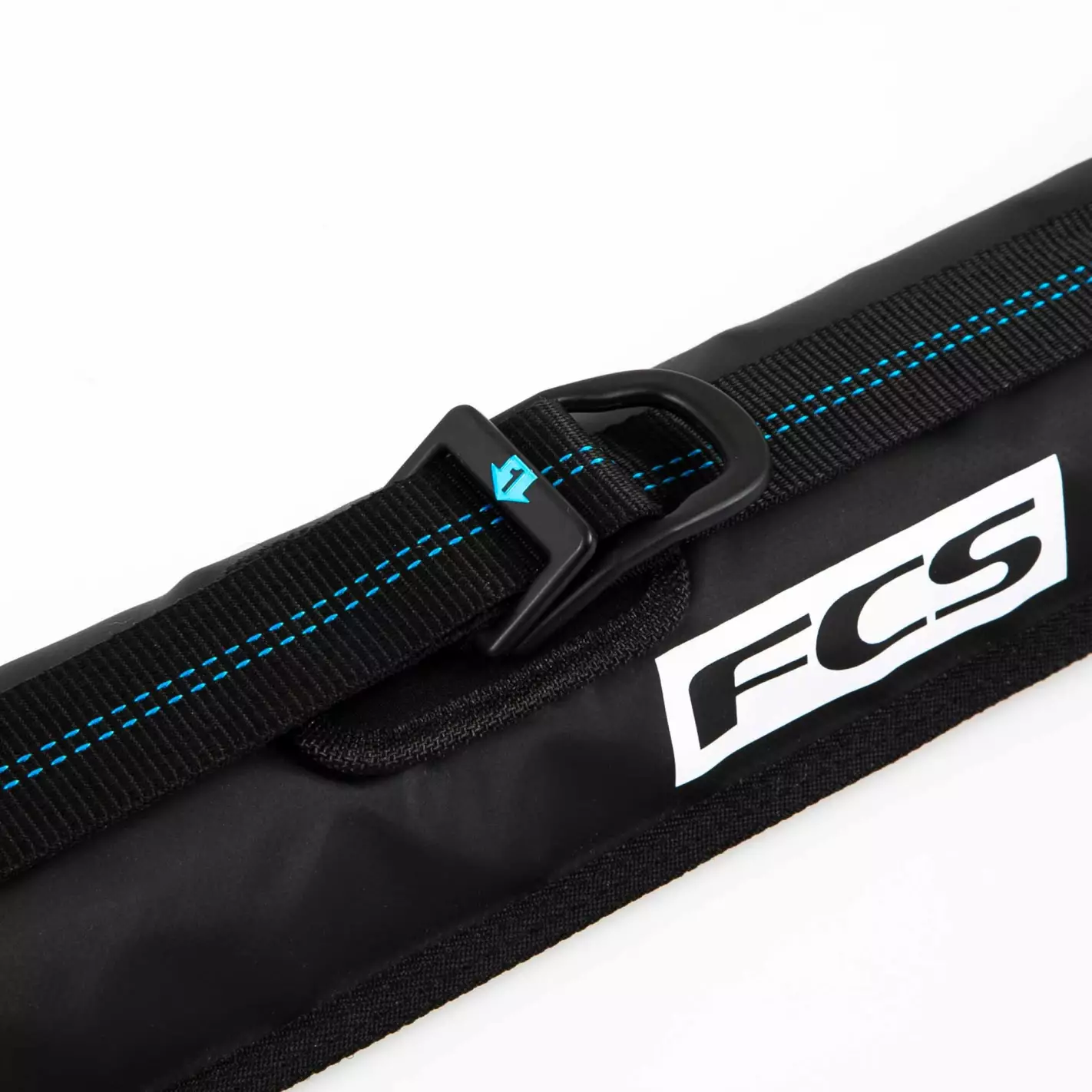 Les coussins aérodynamiques antiroulis avec mousse haute densité protègent vos planches pendant le transport, tandis que la sangle résistante de 32 mm avec revêtement 1000D assure un maintien ferme, même à haute vitesse.