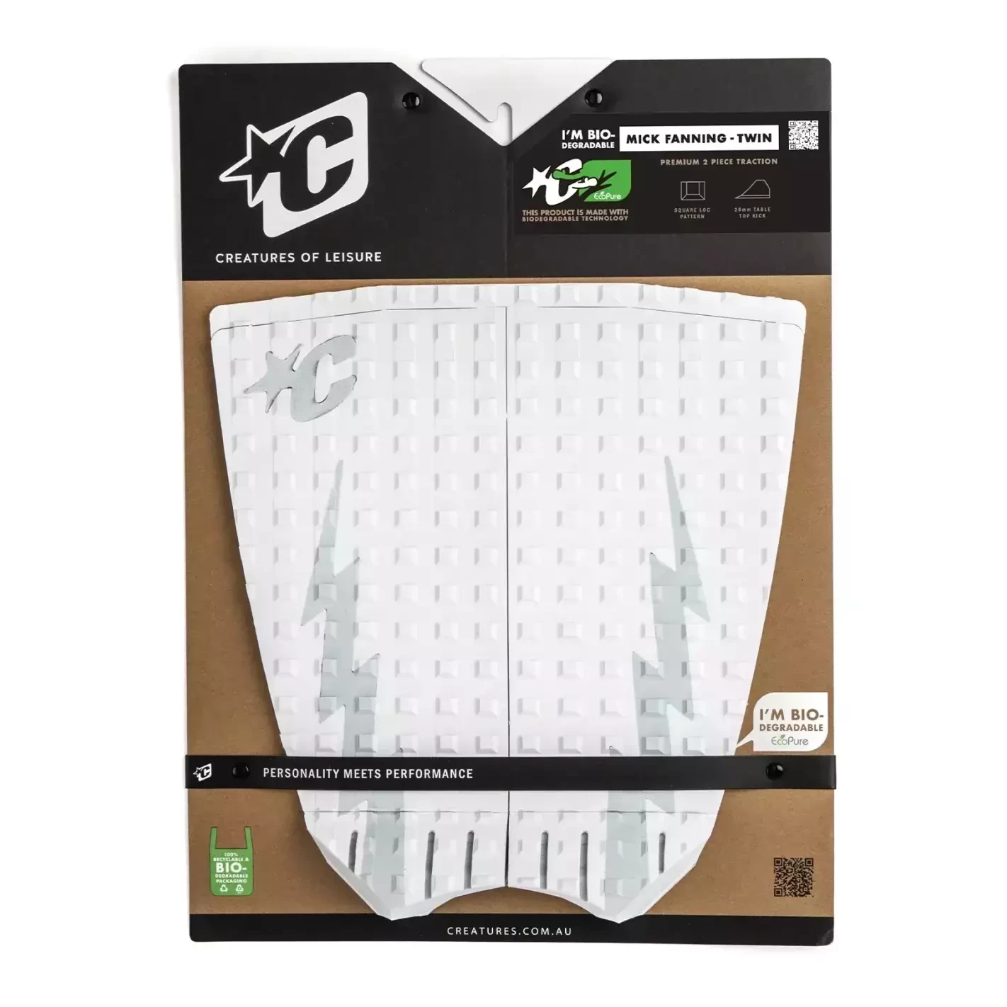 Le grip Mick Fanning Twin de Creatures of Leisure a été spécialement conçu par Mick Fanning pour sa dernière planche twin fin, optimisée pour un surf dynamique et de haut niveau. Ce grip en 2 pièces, avec le motif Square Loc, offre une plus grande surface de traction et sans voûte plantaire, permettant un contact complet du pied et une réactivité immédiate à chaque manœuvre.