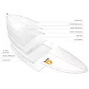 Les planches de surf TORQ ont une construction époxy, avec noyau en mousse en polystyrène, fibres de verre bi-axial laminées avec une résine époxy, et peau en plastique PVT. Le résultat est une planche de surf en époxy légère et très résistante aux impacts de tous les jours. Les planches TORQ ont un système de fixation d'ailerons Futures Fins.