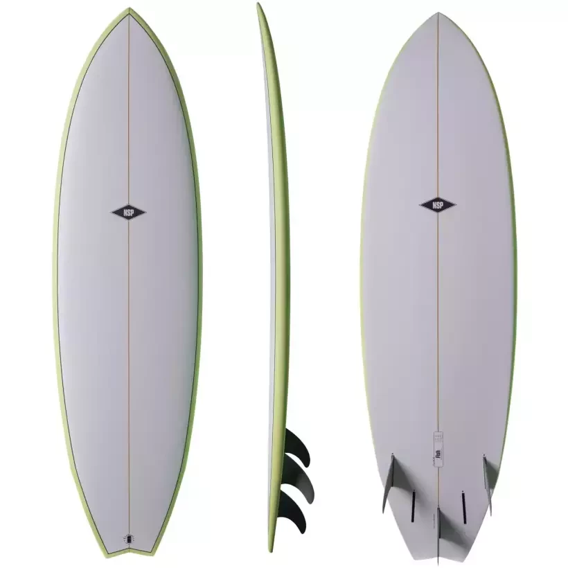 Avec un nose et un outline large, un rocker plus prononcé, la planche fish de NSP est parfaite pour apprécier les petites vagues.