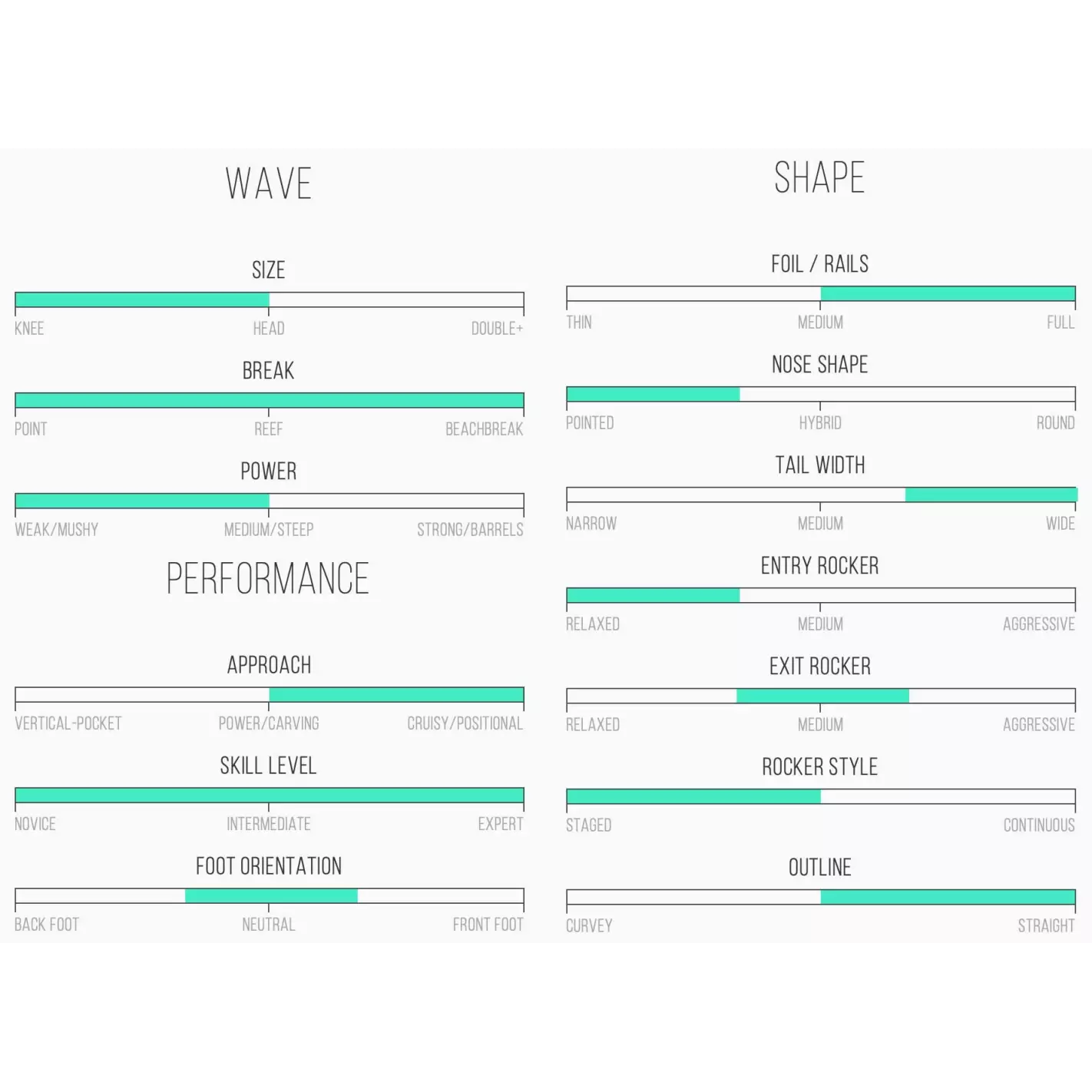 Grand fan de single concave, Dane a demandé à Britt de retirer le vee de la Neck Beard originale, créant un single concave tout du long. Cela a quelque peu changé le rocker, mais d'une manière très positive, améliorant son entrée de vague, sa vitesse et son contrôle global. Ils ont également élargi le bloc de queue de 1/2'' et ajouté une légère hanche, ce qui a accru la réactivité et la maniabilité.