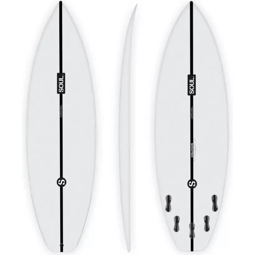 La Soul Delocos est une planche de surf à large queue de style fish, mais conçue avec une queue carrée arrondie. Elle possède un rocker bas à moyen et un rocker de queue moyen à bas avec un simple concave profond juste à l'arrière.
