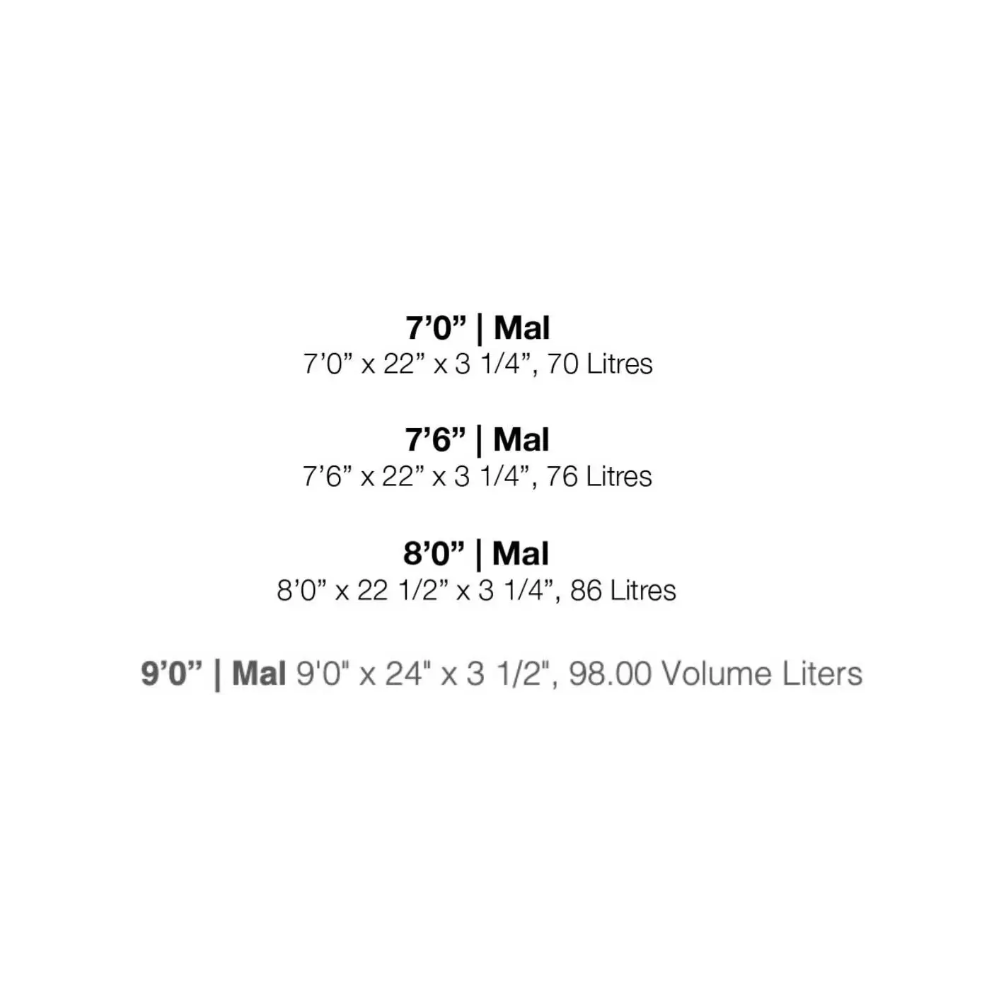 70l. (7') - 76l. (7'6'') - 86l. (8')