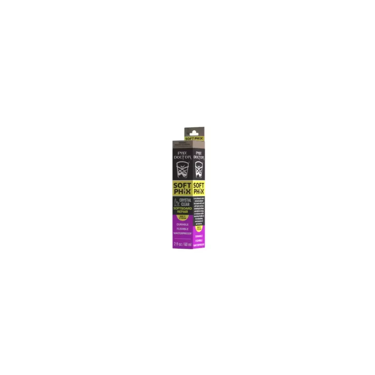 Le réparateur Soft Phix de Phixdoctor est un polymère imperméable super flexible, résistant aux rayons ultraviolets et ultra transparent qui adhère bien à tous les matériaux internes et externes des planches souples, y compris l'EPS (mousse de polystyrène), l'EVA, le HDPE, le PP, le PE.