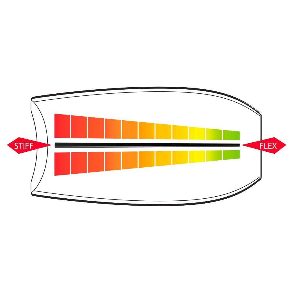 Goditi un flex perfetto con il PRS (Precision Recoil Stringer), uno stringer affusolato in fibra di carbonio. Il PRS è più largo e più rigido alla coda della tavola, e diventa più stretto e flessibile man mano che si avvicina al naso della tavola. Questa traversa lavora con l'anima aggiungendo la molla come il rinculo nella punta mantenendo la rigidità nella coda, la combinazione perfetta per la proiezione della tavola.