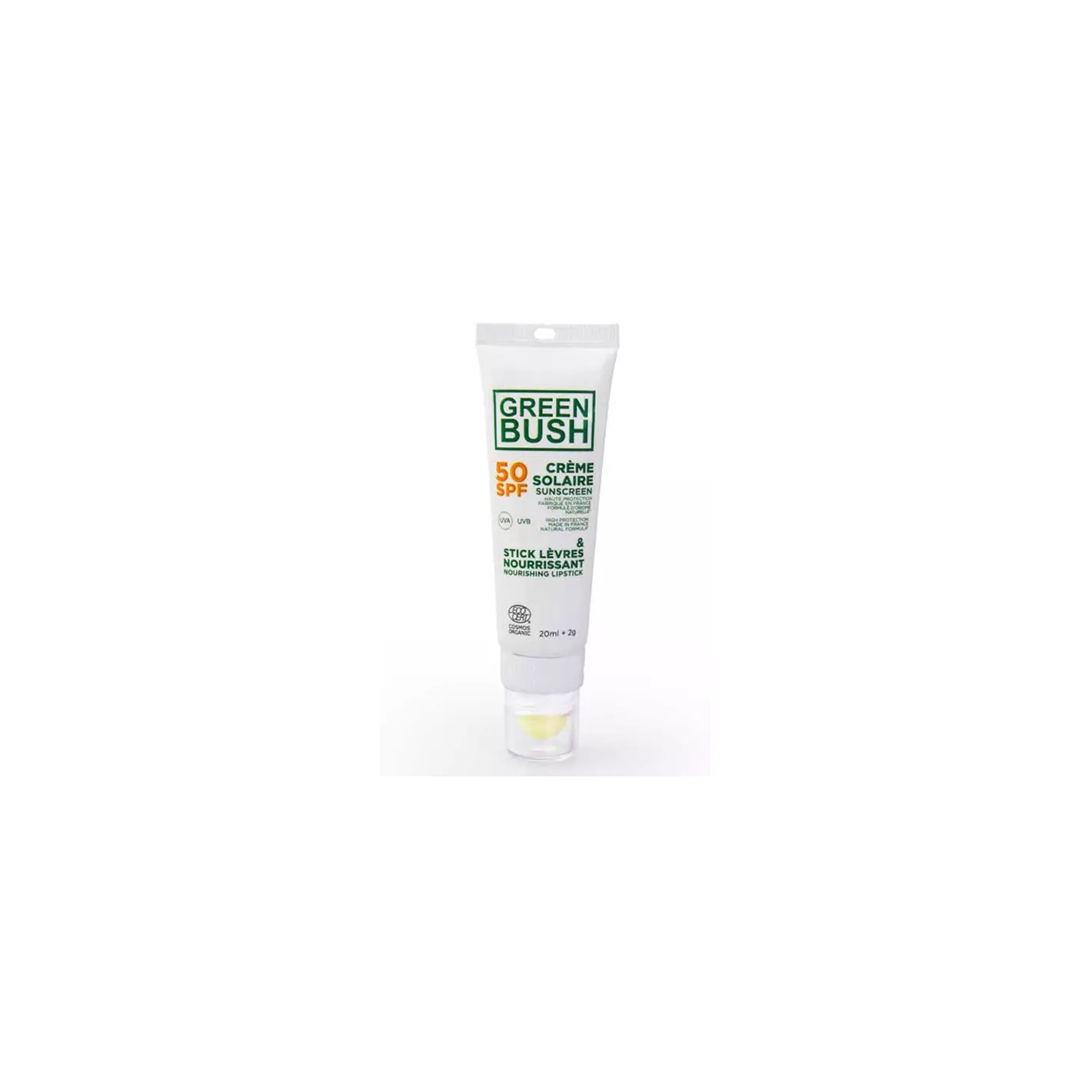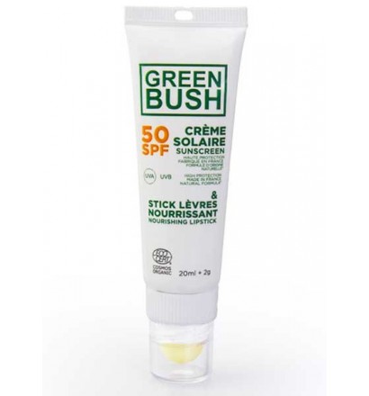 La crema solare Green Bush Combo SPF50 offre una protezione ottimale del viso e delle labbra.