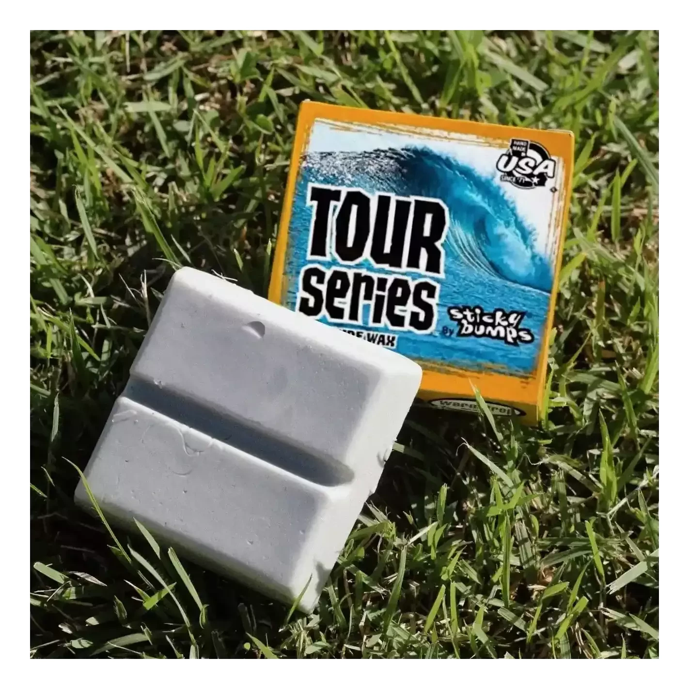 La cera di paraffina Sticky Bumps Tour Seriesè più appiccicoso che il Bump Sticky Originale, ma è ancora completamente biodegradabile e con prodotti naturali e non tossici.