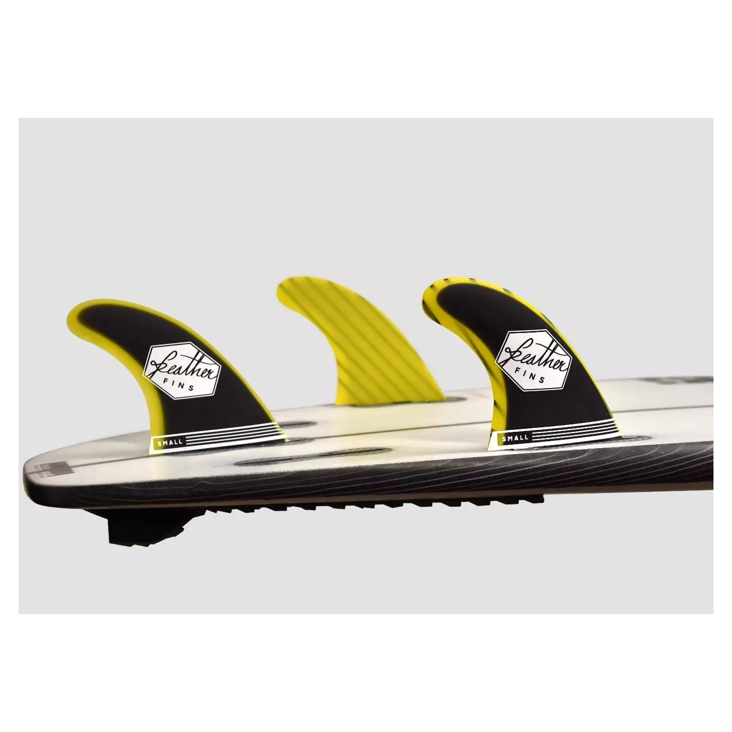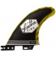 Le chiglie fibra di vetro Giallo e Nero Piuma Pinne ora disponibile con il sistema di ancoraggio fare Clic su Scheda, compatibile con le spine FCSII, che consente il montaggio e lo smontaggio delle chiglie, senza alcun strumento.