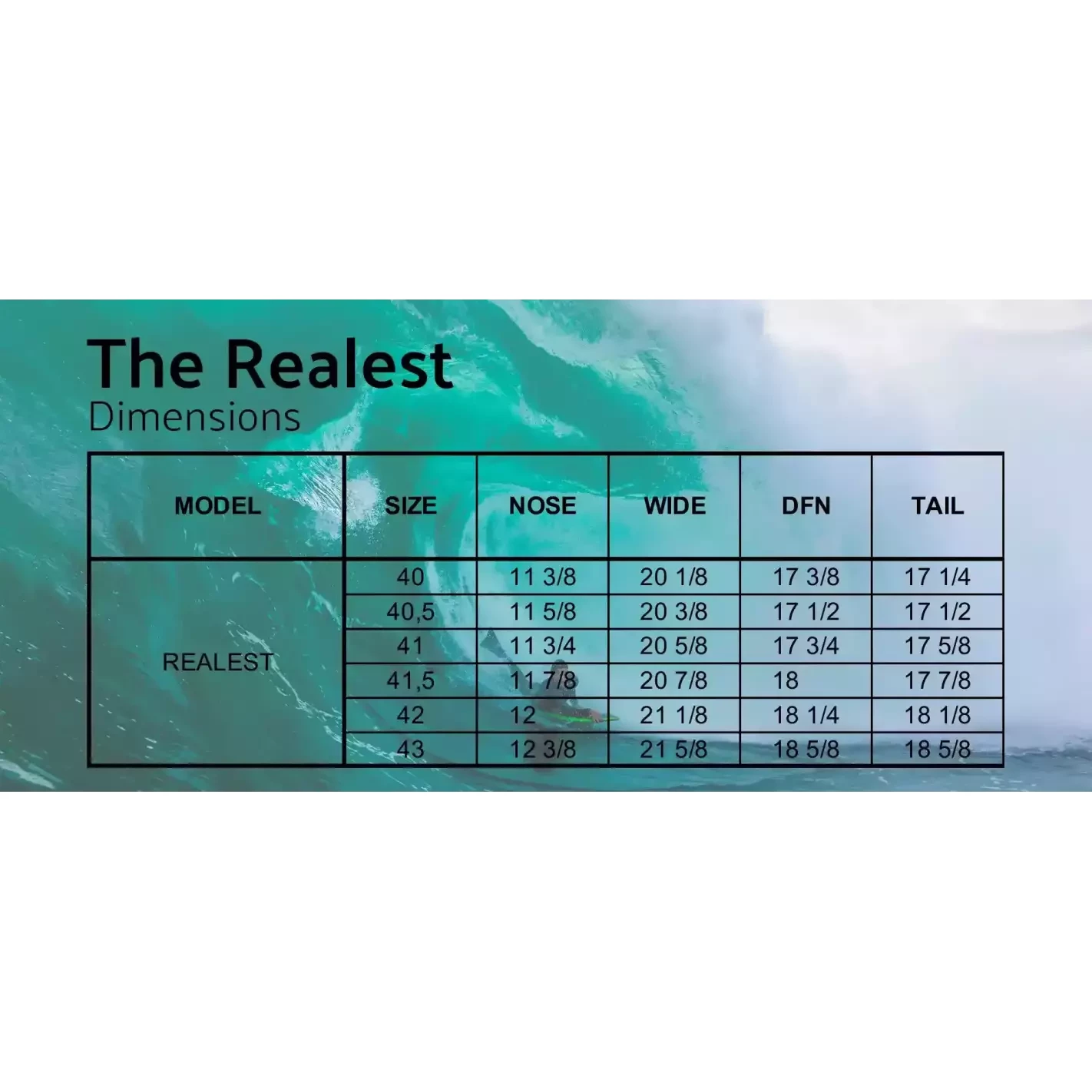 De naam “The Realest”, geïnspireerd door het concept van Tupac Shakur — eerlijkheid, authenticiteit en respect — past perfect bij zowel Tristan als deze board. De Realest is een 100% prone-georiënteerd board met een rechter shape, extra dikte voor meer volume en een breder outline — ideaal voor riders die explosieve snelheid, maximale drijfkracht en hoge prestaties zoeken, zelfs in kleine tot middelgrote golven.