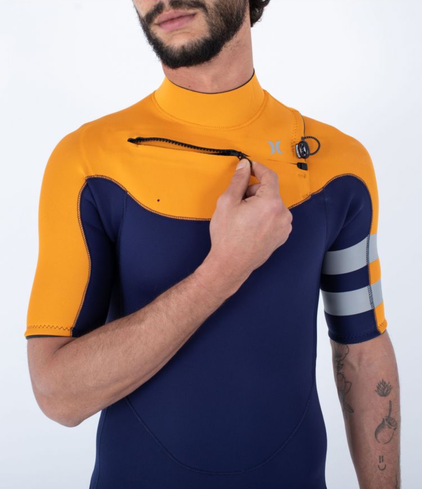 Het Hurley Advantage 2/2 mm SS Fullsuit Wetsuit is gemaakt met getapete naden die weg van de oksels zijn geplaatst voor comfortabele beweging. Ze zijn aan de binnenkant en op specifieke punten thermisch afgedicht om de duurzaamheid van het pak te vergroten en het binnendringen van water af te weren. Het interieur wordt gevormd door thermische retentiedraden, die het drogen van het neopreen aan de binnenkant versnellen. De ExoFlex-technologie maakt hem flexibeler dan eerdere modellen. Het heeft een ritssluiting aan de voorkant, met een zak op de borst om de sleutels in op te bergen.