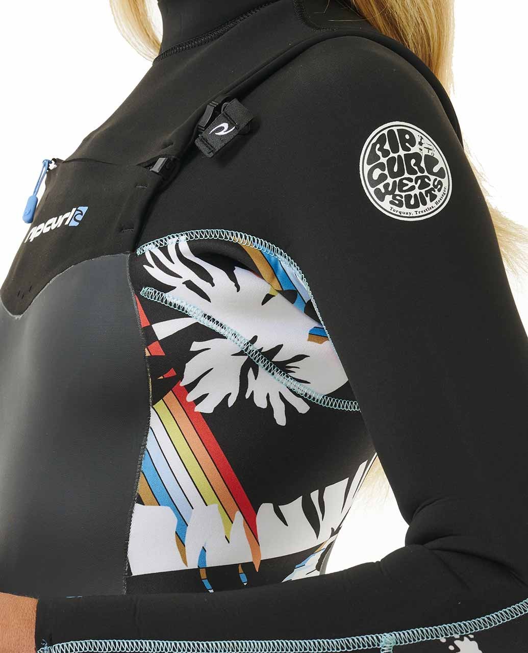 Het Rip Curl Dawn Patrol Women 4/3 wetsuit met borstrits is ontworpen voor prestaties. Dit pak combineert E5 flash lining en E5 neopreen voor optimale isolatie en flexibiliteit. Daarnaast verbetert de E4 thermo lining de warmte, wat zorgt voor comfort in koud water.