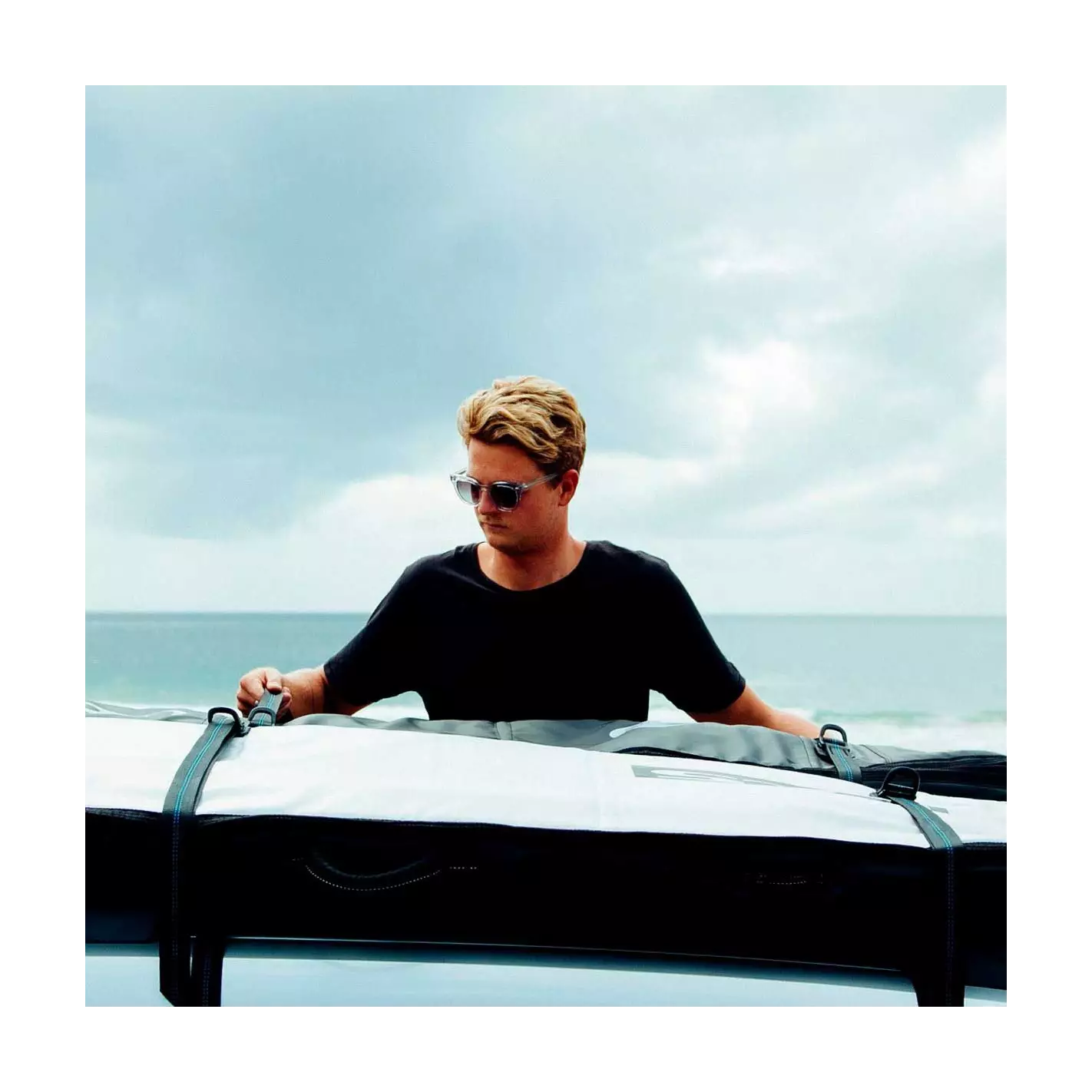 Os almofadados aerodinâmicos antiderrapantes com espuma de alta densidade protegem as pranchas durante o transporte, enquanto a cinta resistente de 32 mm com revestimento 1000D garante fixação firme, mesmo em altas velocidades.