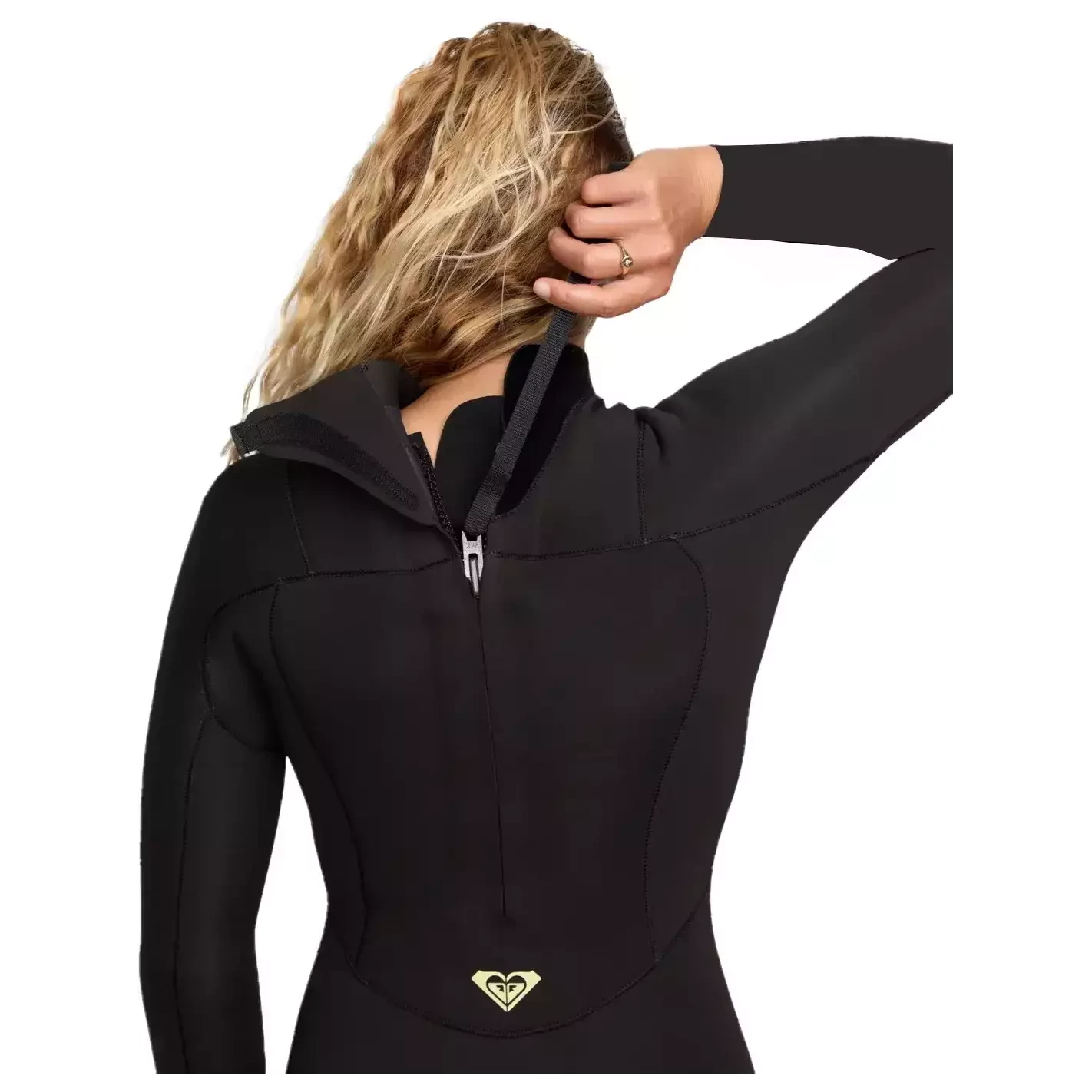 O fecho traseiro facilita vestir e retirar o neoprene, e os painéis de costura com fita Melco aumentam resistência e durabilidade.