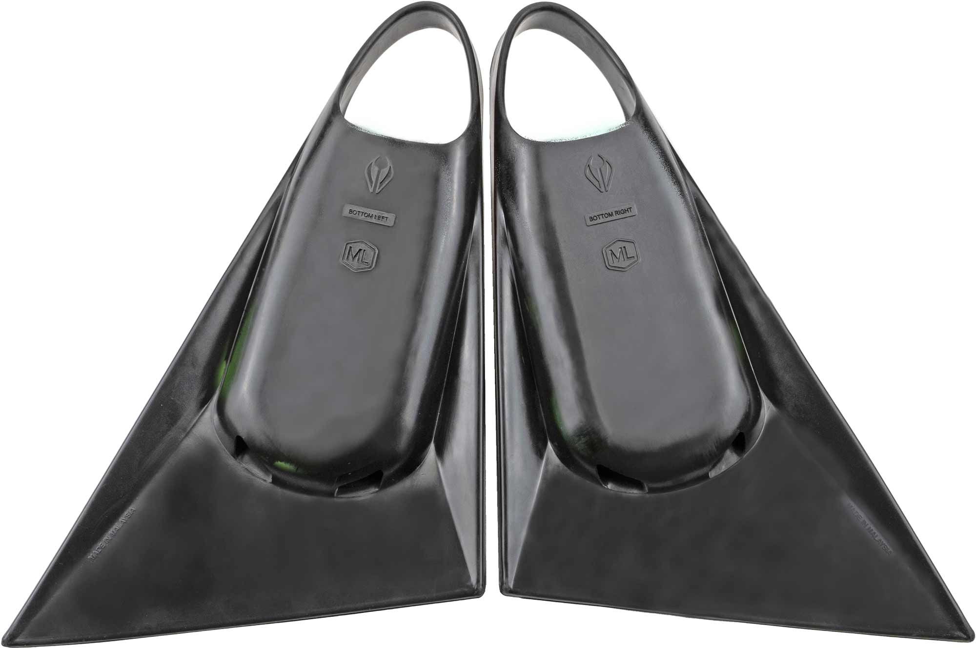 Essas barbatanas são fabricadas usando um único molde de lâmina e calçadeira para cada tamanho, garantindo uma proporção adequada de tamanho para cada usuário. Além disso, elas possuem uma rotação analógica na tira traseira, na altura do tornozelo, para evitar problemas de atrito e irritação. Também possuem orifícios de drenagem amplos para evitar acúmulo de areia no pé durante o uso.