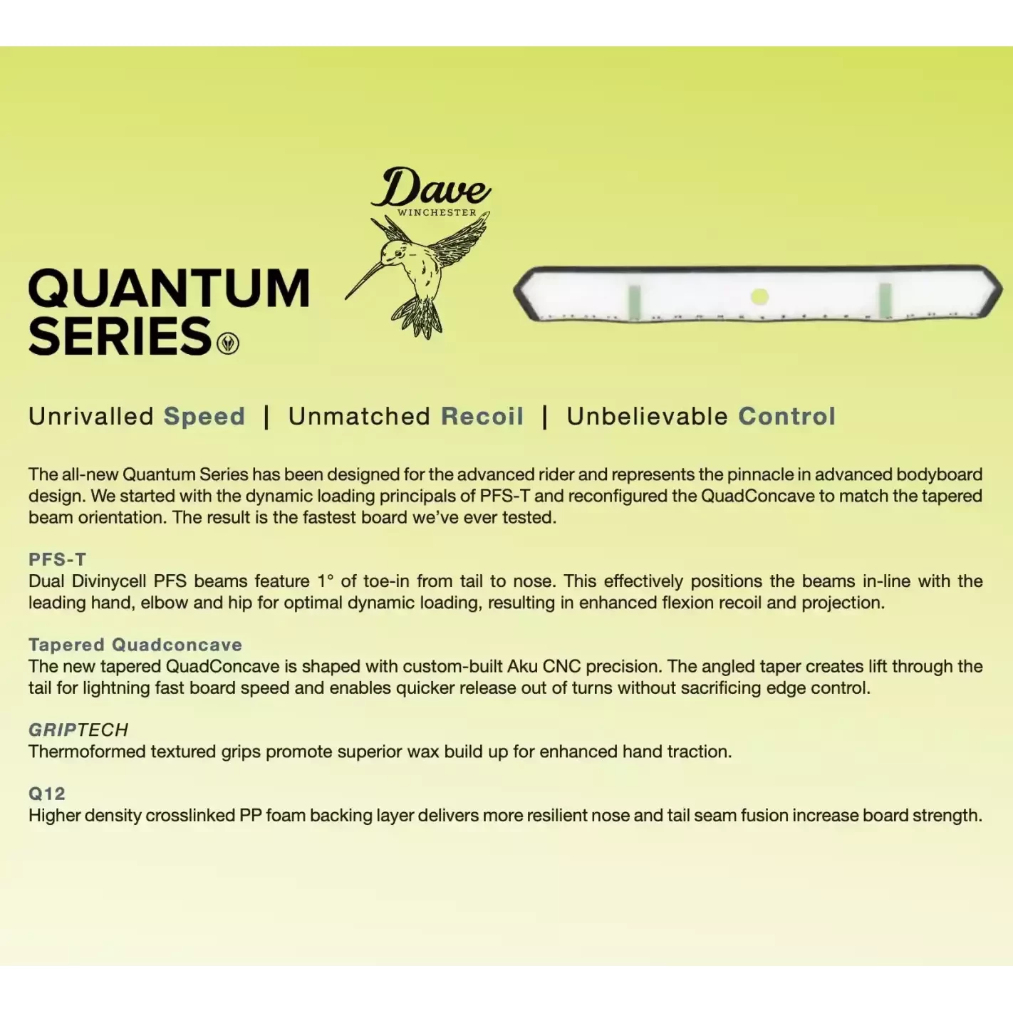 VS Dave Winchester Quantum oferece a combinação perfeita de velocidadecontroloflex inteligente e projeção, permitindo um surf poderoso, fluido e extremamente técnico em qualquer condição.