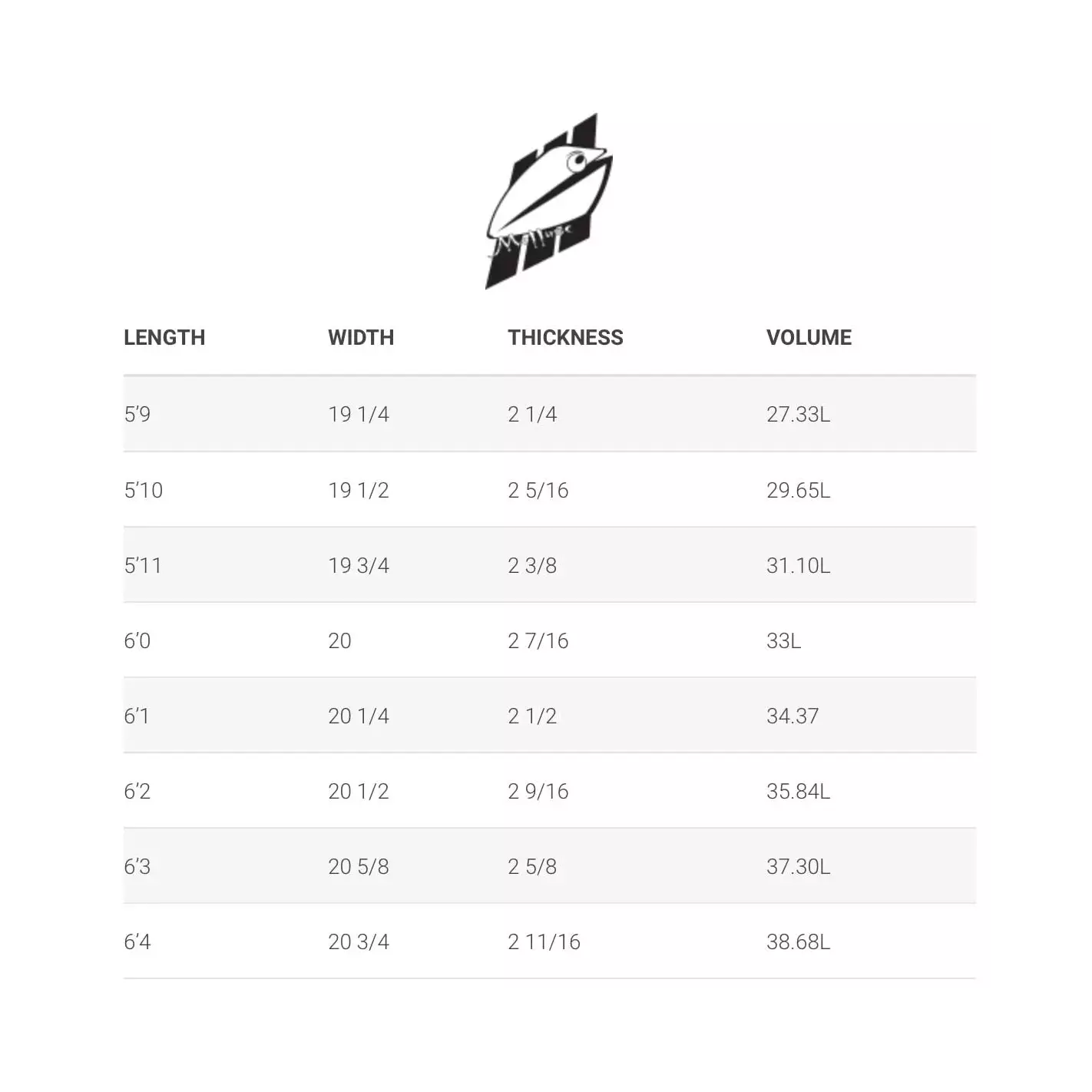 É uma tabela rápida, suave nas curvas, que funciona bem tanto em ondas pequenas como em ondas ocas e tuberas, do mesmo estilo que as Hayden Shapes Hypno Krypto, Soul Blob, ou MS Velocidade de Coelho.