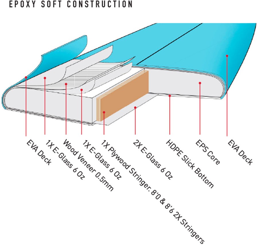 A Happy Hour Epoxy Soft é uma prancha de surf muito divertida e versátil. Projetada para oferecer uma combinação perfeita de diversão e desempenho, esta prancha facilita e torna divertido pegar ondas e realizar manobras. Sua construção inclui um núcleo leve de EPS, fibra de vidro laminada com resina epóxi e uma cobertura de espuma EVA.