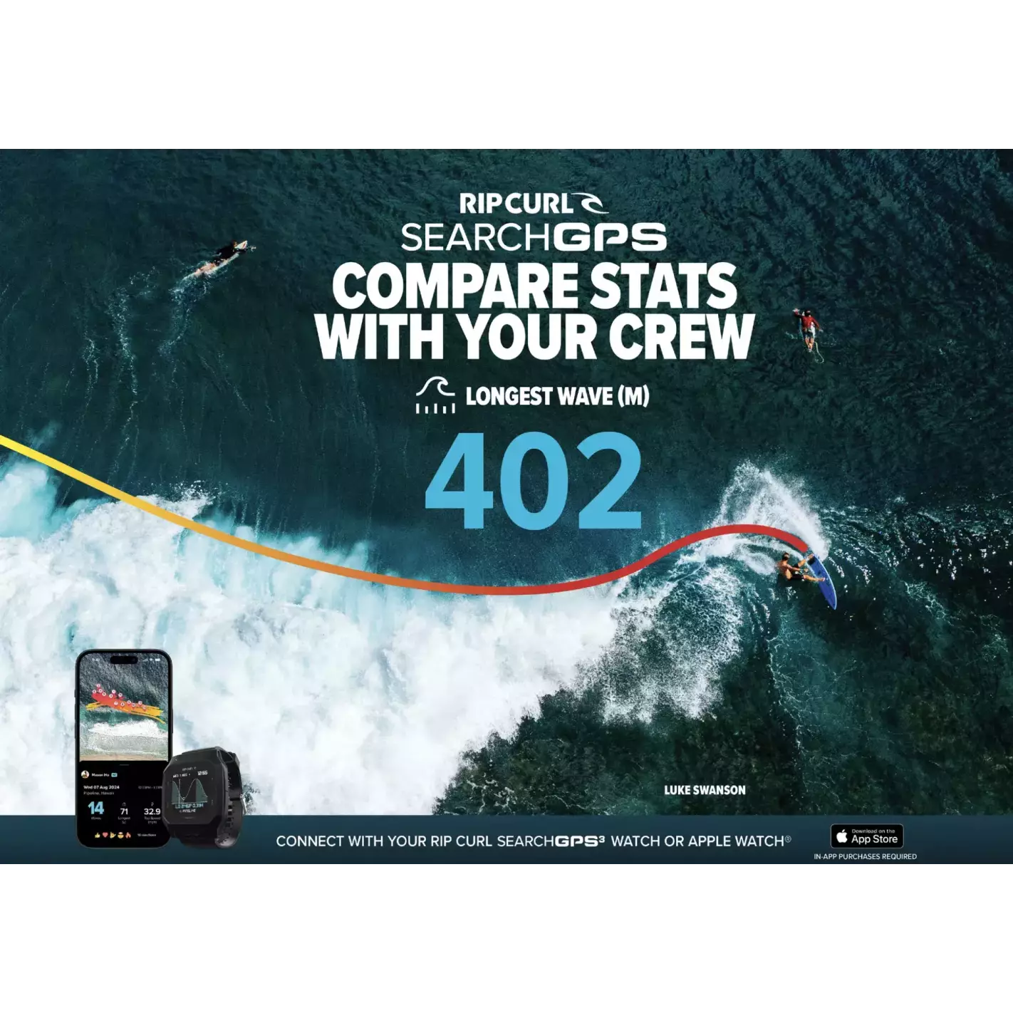 Com o novo Rip Curl Search GPS 3, você pode planejar, registrar, reviver, comparar e compartilhar cada sessão de surf. É a motivação sem fim que você precisa, diretamente no seu pulso.