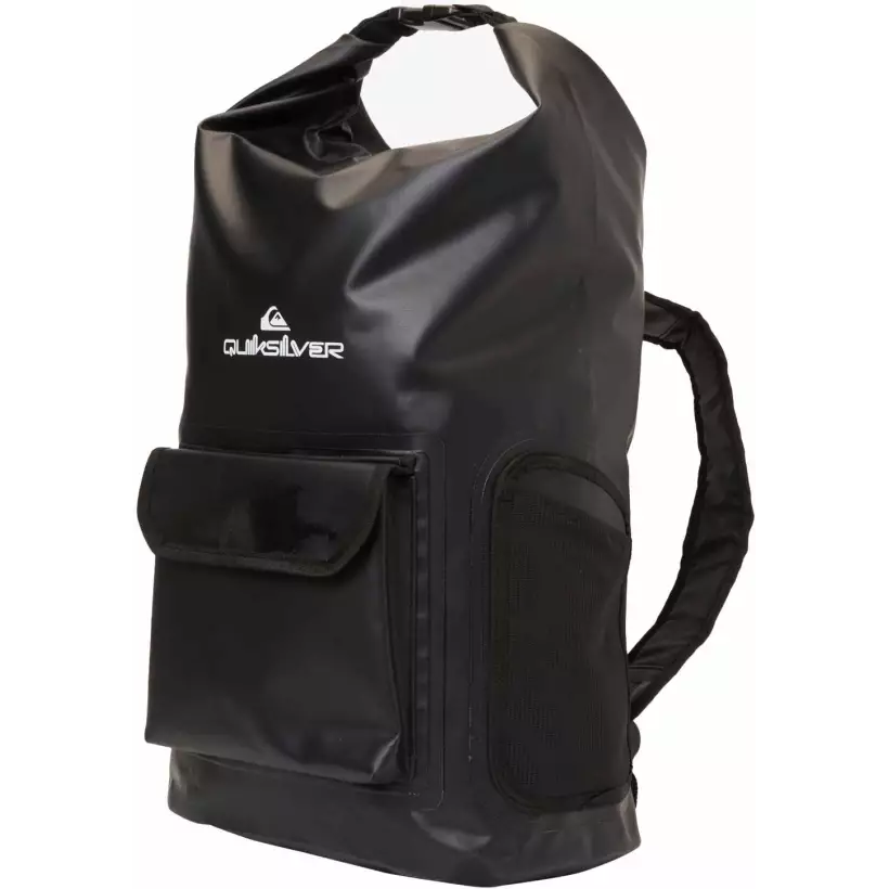 A mochila à prova d'água Quiksilver Sea Stash Mid possui um compartimento reforçado para itens úmidos e secos, um bolso frontal para manter os itens à mão e um porta-garrafa de água lateral.